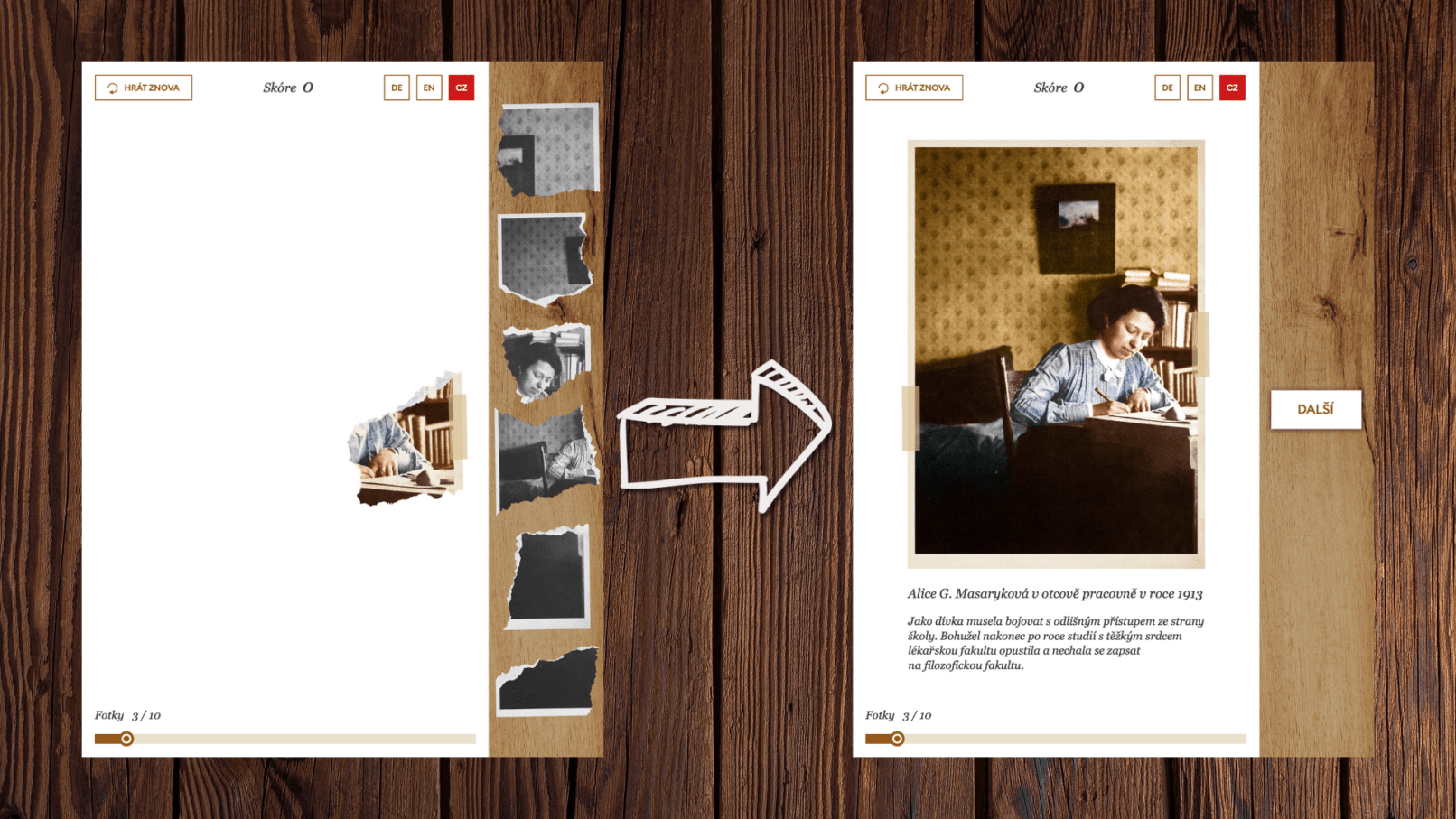 V muzeem Alice Masarykové jsme vytvořili kompletní návrh a řešení audiovizuálních prvků, které spojují moderní technologie s hluboce lidským příběhem. Animované video zachycuje život Alice Masarykové, zatímco interaktivní hry, historické fotografie a projekce přibližují události, které formovaly její odkaz. Výzvou bylo navrhnout obsah na míru existujícímu hardwaru a zároveň nabídnout inspirativní a vzdělávací zážitek. Výsledkem je expozice, která uchovává příběh Alice Masarykové jako průkopnice humanitární pomoci a jejího působení v Červeném kříži.
