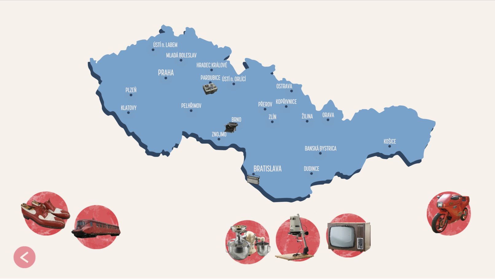 Pro tuto výstavu jsme vymysleli, nakreslili a naprogramovali 6 zábavných her. V nich jste hádali, kolik stály dobové výrobky Made in Czechoslovakia, jak dlouho by vám to trvalo na motorce Jawa z Prahy do Bratislavy, nebo kde se vyrábí mikroskopy Meopta. Jednoduché hry pobaví a za odměnu předají historickou informaci.