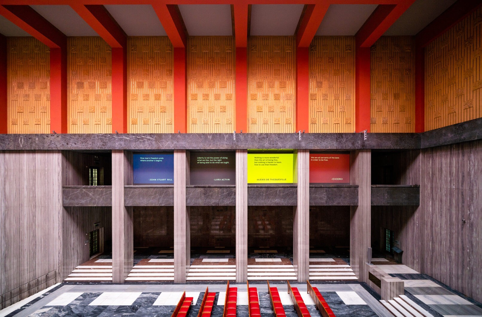 Výstava v Národním památníku na Vítkově představuje vývoj parlamentní kultury v našich zemích mezi lety 1848–1992. Do výstavy jsme vyvinuli a vyrobili tři hlavní komponenty: